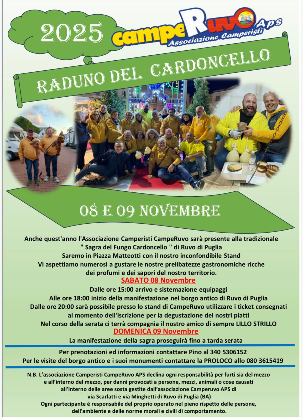 Per la quattordicesima edizione, l'invasione da parte dei camperisti è stata totale. L'associazione in collaborazione con la Pro Loco e il comando della Polizia Municipale di Ruvo di Puglia ha provveduto a recuperare aree per la sosta camper in tutta via Minghetti e parcheggio attiguo, le due aree sosta erano già al completo da diversi giorni.